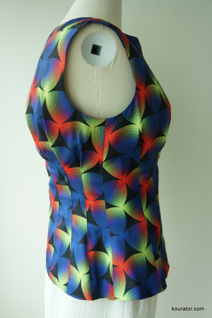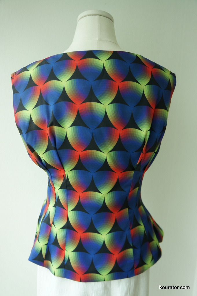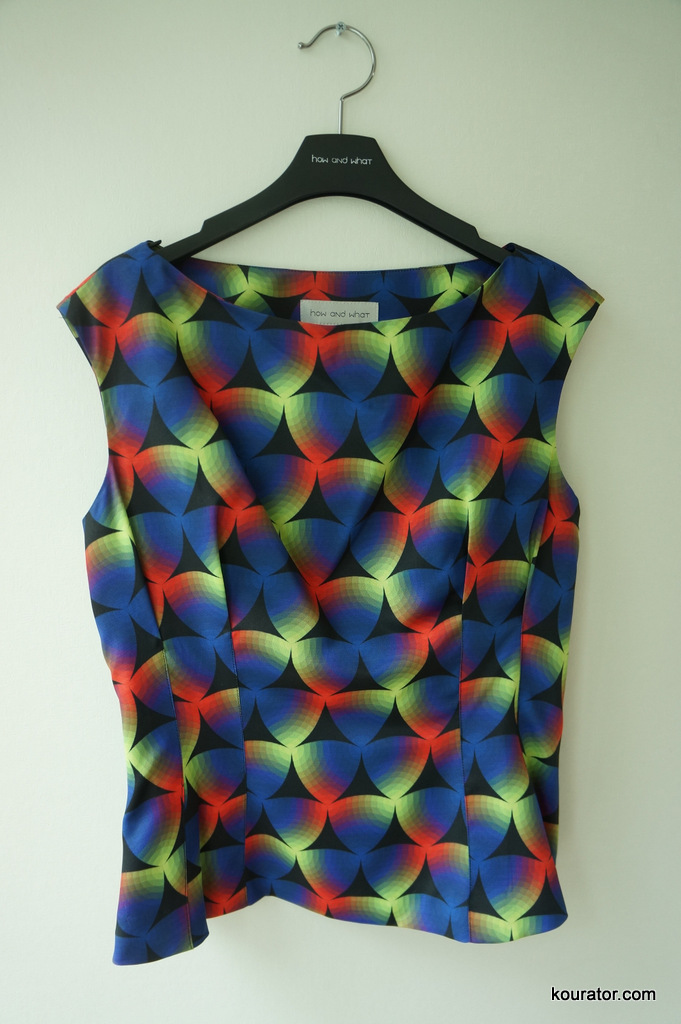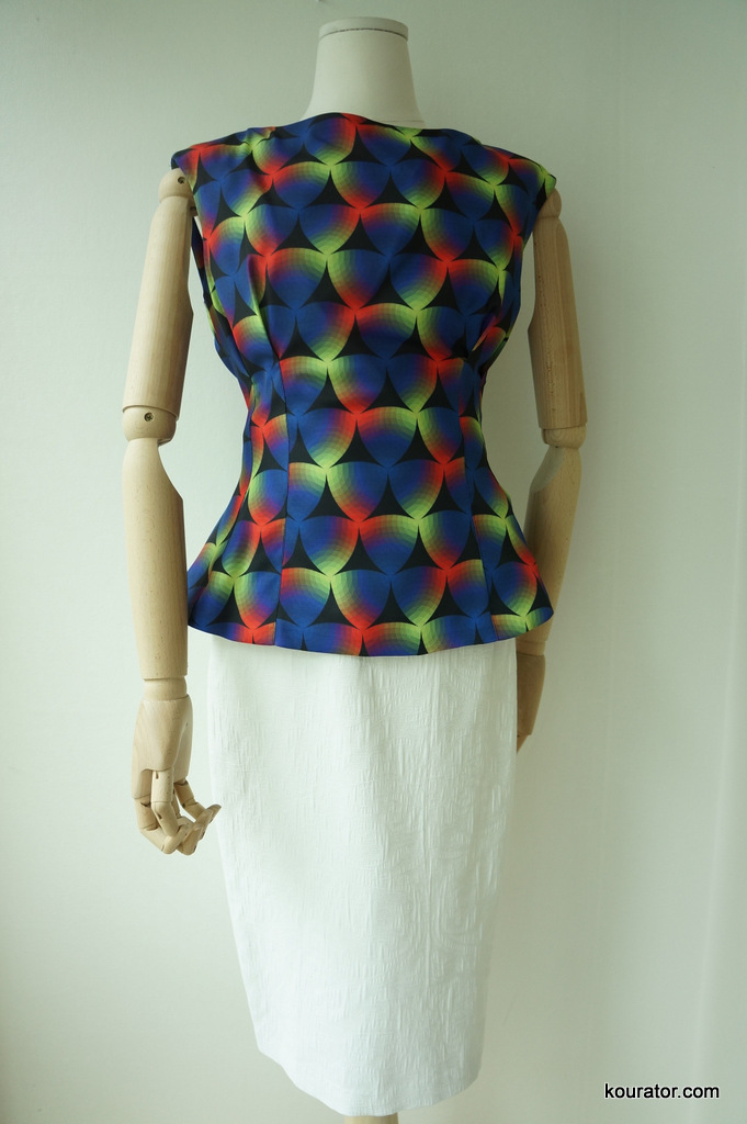 Look closely the prism pattern and sewing works. It’s no ordinary top. Match it with a white mid-length pencil skirt with black or nude stilettos. Has a thin black lining and a hidden zipper.