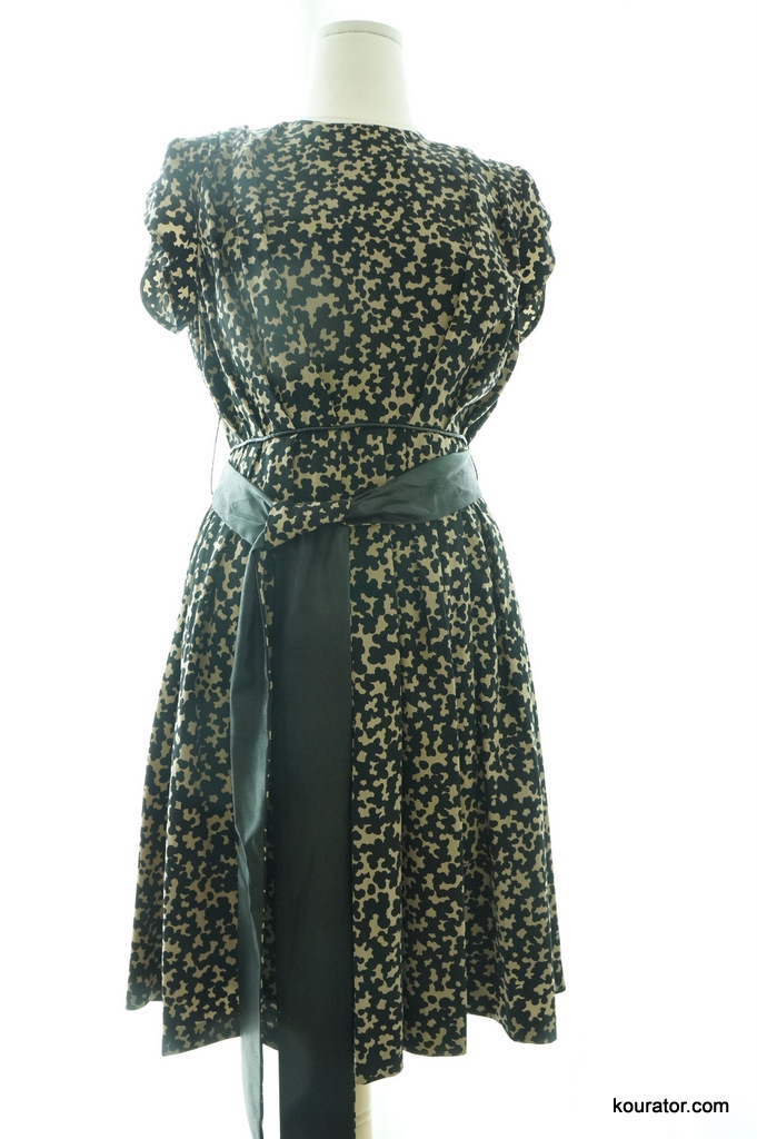 It may come across as a nice girl's dress. But it is a lot more special than that. It comes with a faux-leather belt, and has a slit on the front. We have only one piece (U.S. size 4) left.