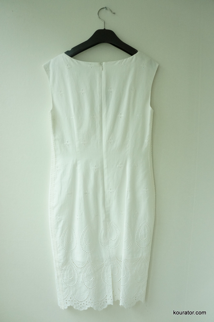 Uber feminine piece with eyelet details and lace tapes on the sides that Kourator is very proud to offer. We love the cut, but the dress will fit the customers with small pelvis and hips.